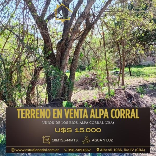 EXCELENTE TERRENO EN VENTA EN ALPA CORRAL. SUPERFICIE: 10MTSx44MTS. SERVICIOS DE